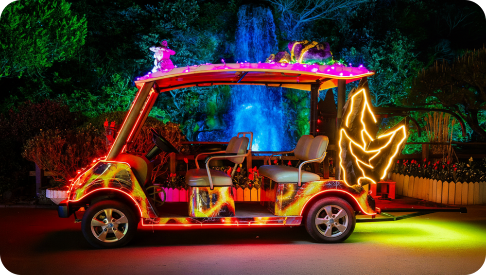 밤에도 편안하게 모든 존을 탐험할 수 있는 루미버스만의 이동형 어트랙션입니다. (입장권 외 별도 구매 상품입니다)