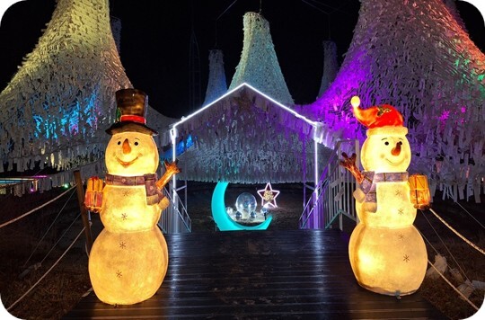 하얀 눈이 쌓인 듯 빛나는 아름다운 조명아트는