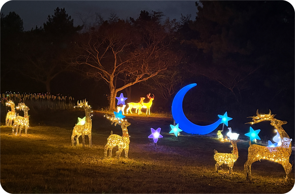 제주의 겨울과 자연의 빛을 담은 겨울왕국으로 눈이 오지 않아도 크리스마스 감성을 완벽하게 느낄 수 있는 '눈빛 내려오는 밤'이 펼쳐집니다.